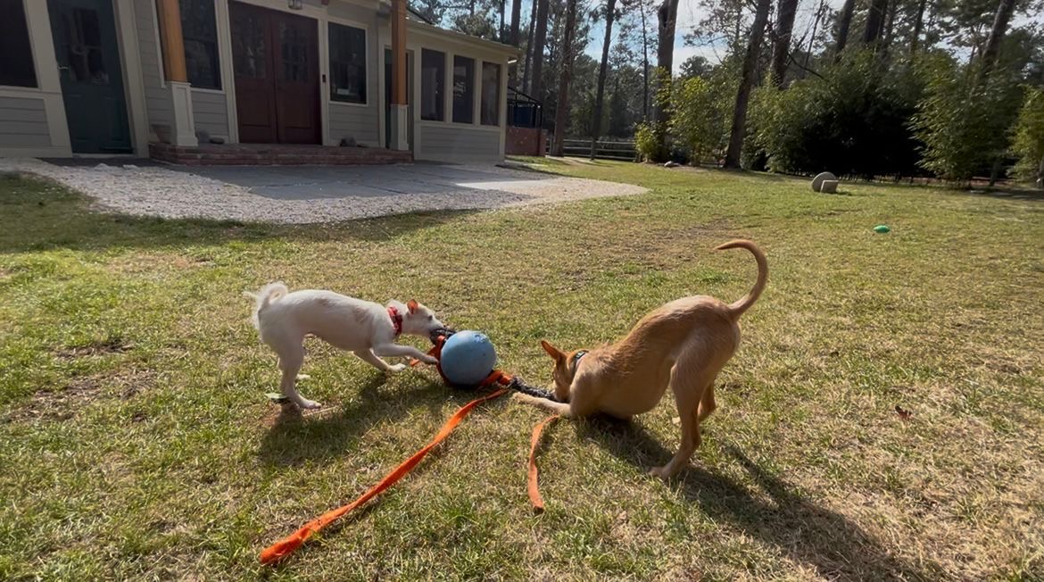 Cricket and her sister, Freya, were owner surrenders and joined us in January 2026. They were so close to being euthanized and pulled at the last minute. When they arrived, they were terrified and we thought it would take quite some time to gain their trust. After just a few days of slow, gentle approach (and lots of chicken) they totally transformed.