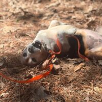 Daisy arrived as a stray in mid-April 2026 and is such a sweetheart. She is heartworm positive but is doing well with her monthly treatment and taking it all in stride.