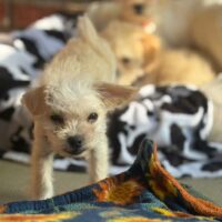 Teeny, Tiny, and Itsy Bitsy arrived mid-April 2026. They were surrendered when their owner realized their new dog was pregnant soon after she was adopted! What a surprise!